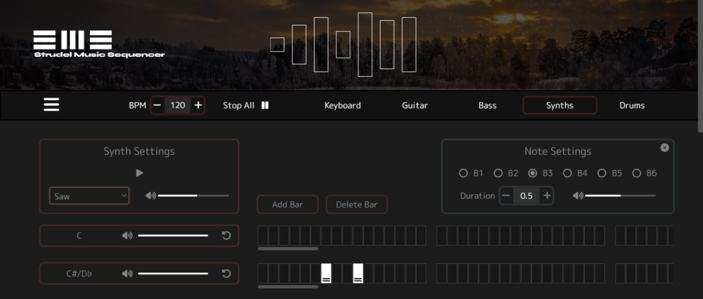 Strudel Music Sequencer is a React-based music sequencer built with Strudel.js and Zustand, enabling users to design rhythmic patterns through an intuitive interface and generate sound in real time.